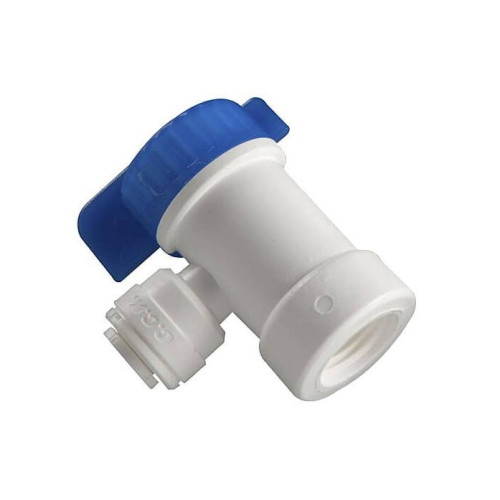 Кран накопительной емкости - предназначен для подключения накопительной ёмкости к системе фильтрации воды. Работает в двух положениях: открыто–закрыто. Кран имеет присоединительный размер 1/4″ с внутренней резьбой и цанговое соединение для подключения трубки 1/4″. Корпус изготовлен из прочного пластика, а уплотнительные кольца из высококачественной резины. Все материалы сертифицированы для контакта с питьевой водой.